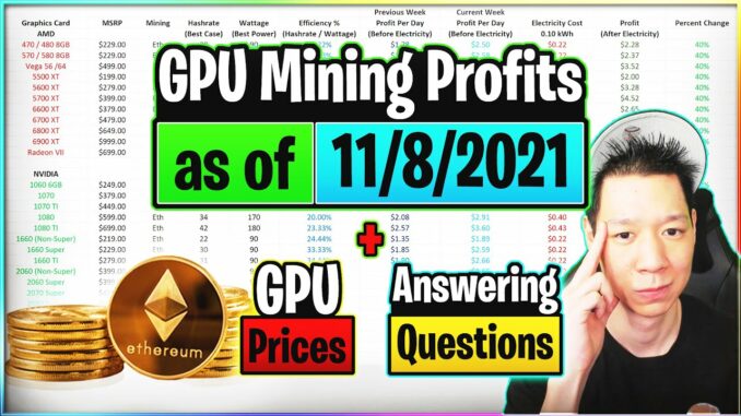 GPU Mining Profits as of 11/8/21 | GPU Prices | Answering Questions 25. Oktober 2022 KryptoNews Mining 0