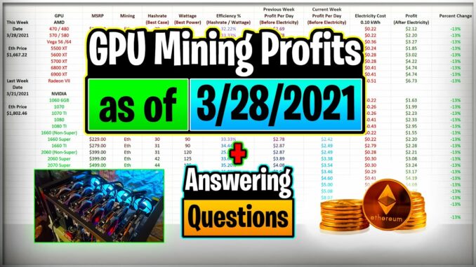 GPU Mining Profits as of 3/28/21 | Answering Questions | Twitch Recap 13. November 2022 KryptoNews Mining 0