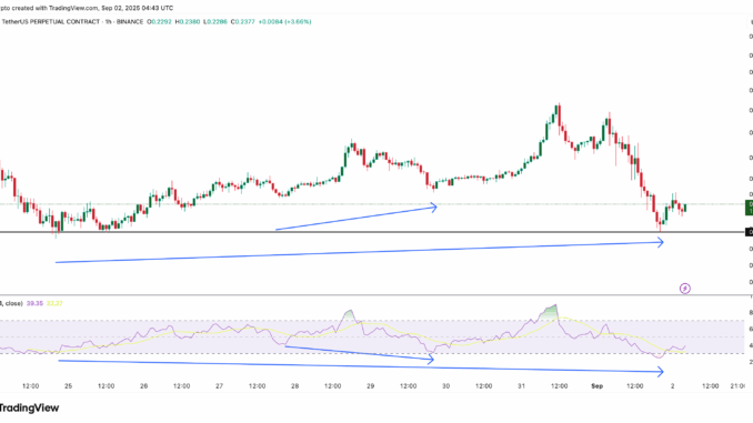 The perpetual chart offers important context for WLFI price. Between 27 and 29 August, the token showed a short-term setup where the WLFI price made a higher low while RSI printed a lower low. That divergence helped fuel the late-August rally.